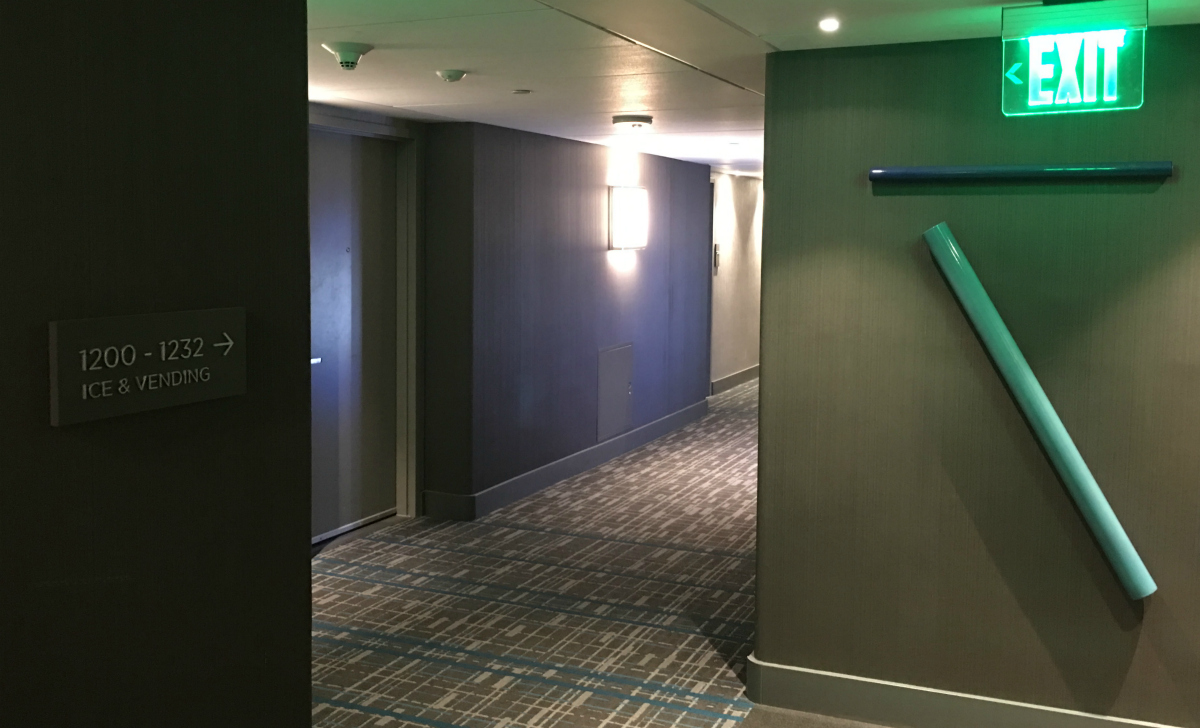 Top floor elevator landing on way to gym